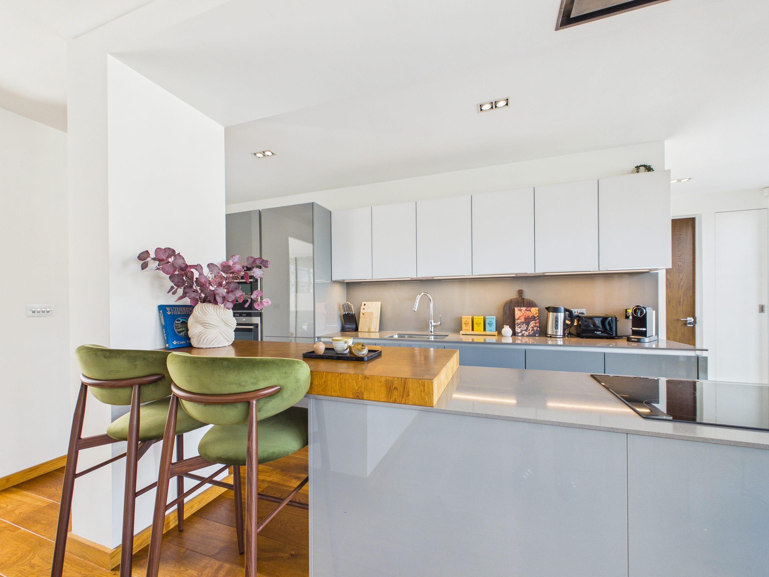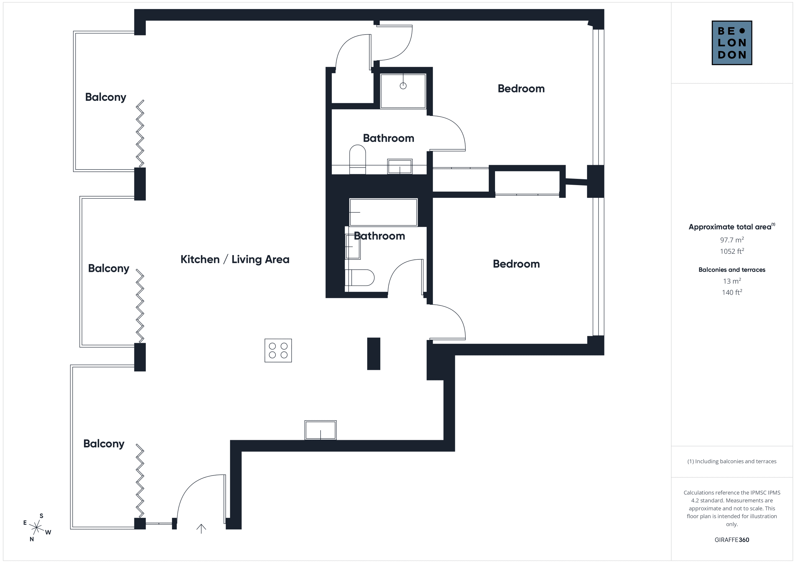 One bedroom features a super-king bed (which can be converted to twin beds upon request), with the other benefiting from a king size, with both offering plenty of wardrobe space. The master bedroom also includes a Smart TV, with an ensuite bathroom featuring a walk-in shower, whilst the second, the primary bathroom, offers a bath with shower. A balcony covers the rear side of the apartment.