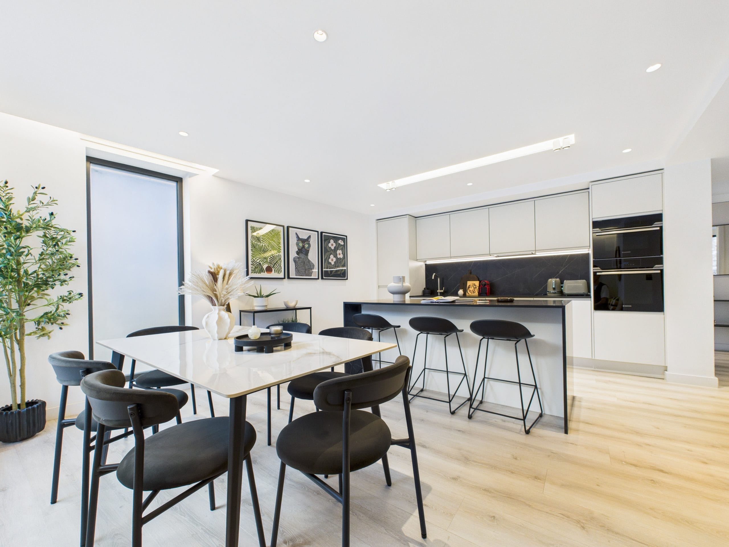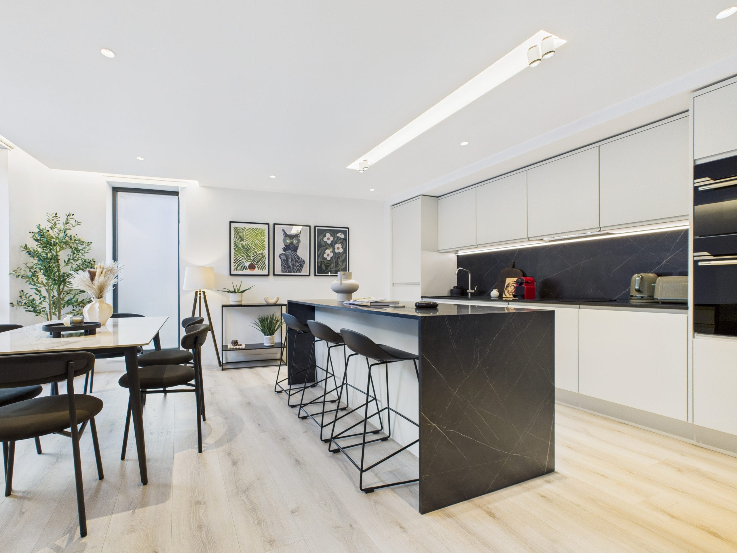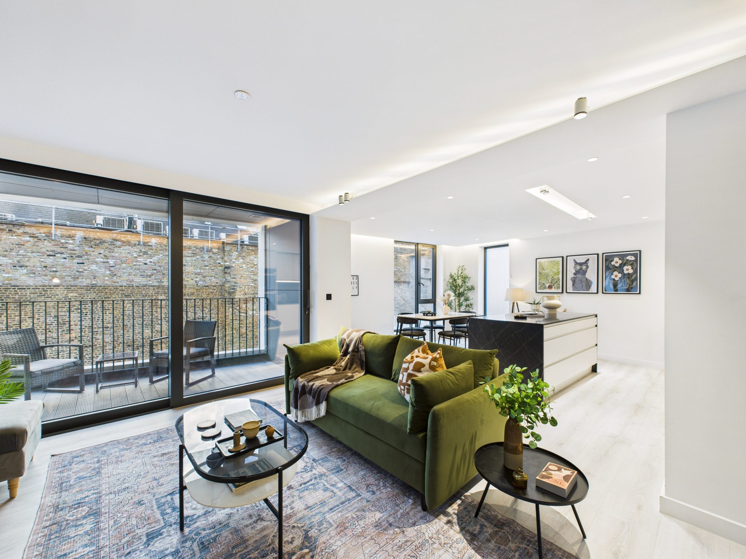On the second floor lies the primary bedroom, again, boasting its own balcony space, giving you your own slice of London’s iconic skyline. The ensuite bathroom, with walk-in shower, is finished to a luxe standard, whilst the separate WC is perfect for visiting guests.