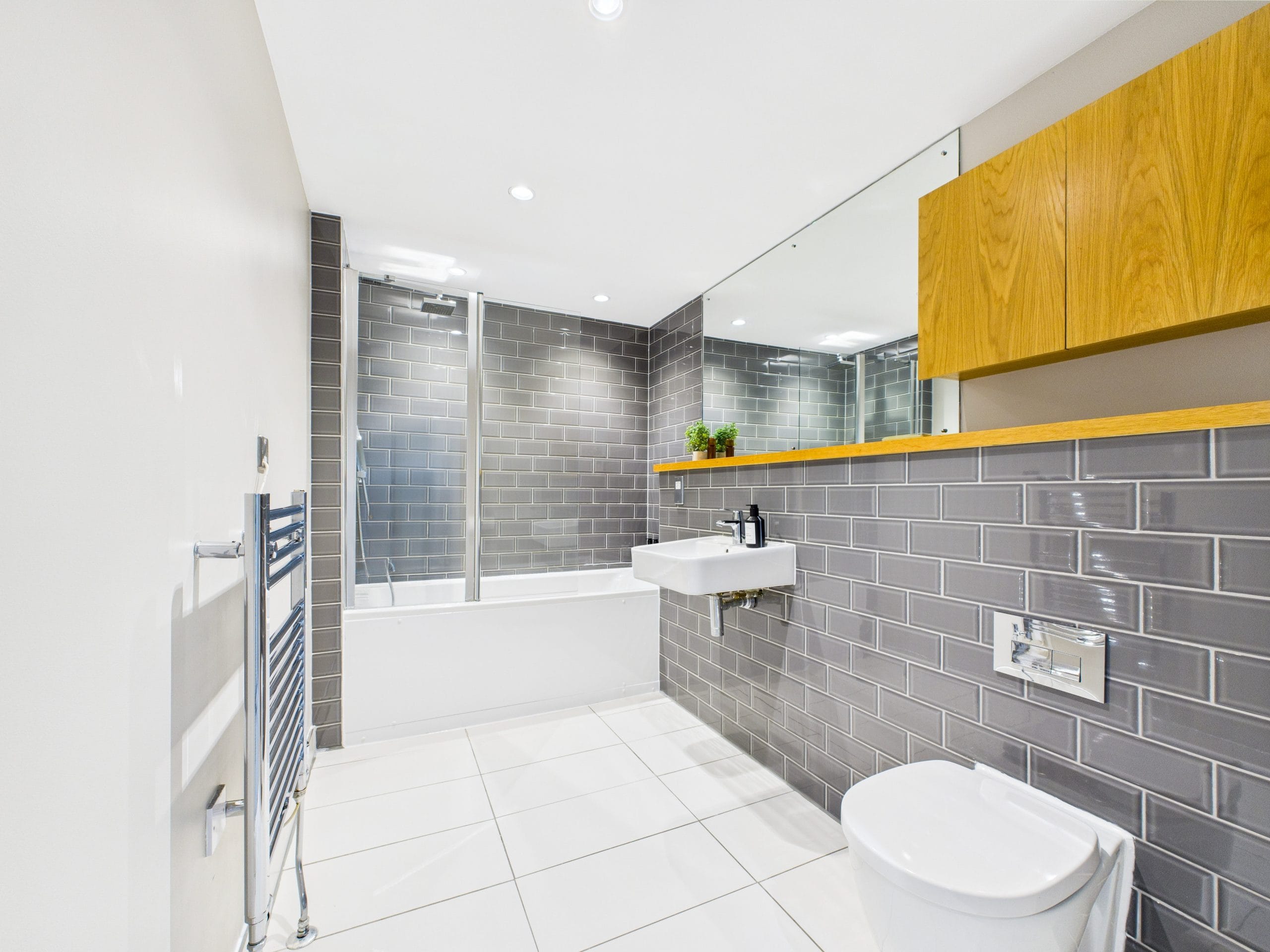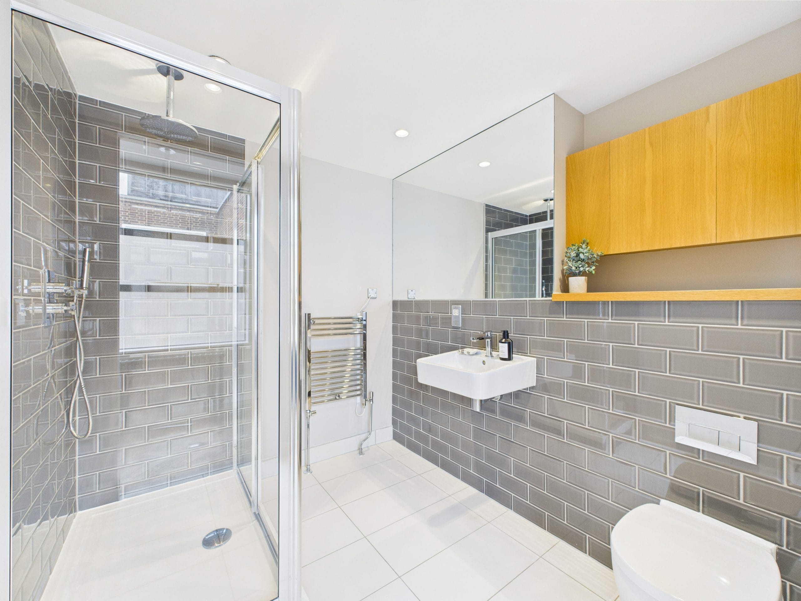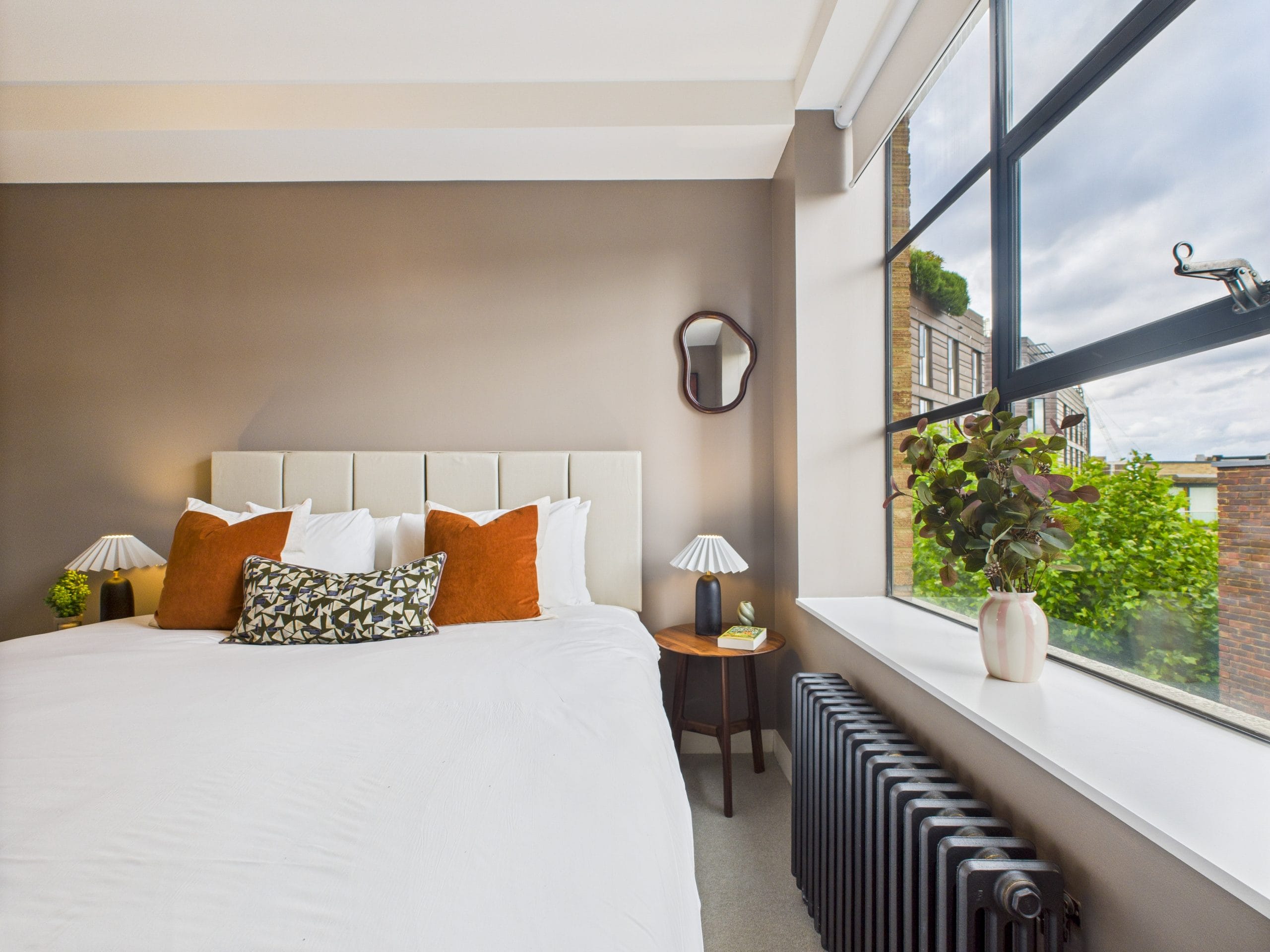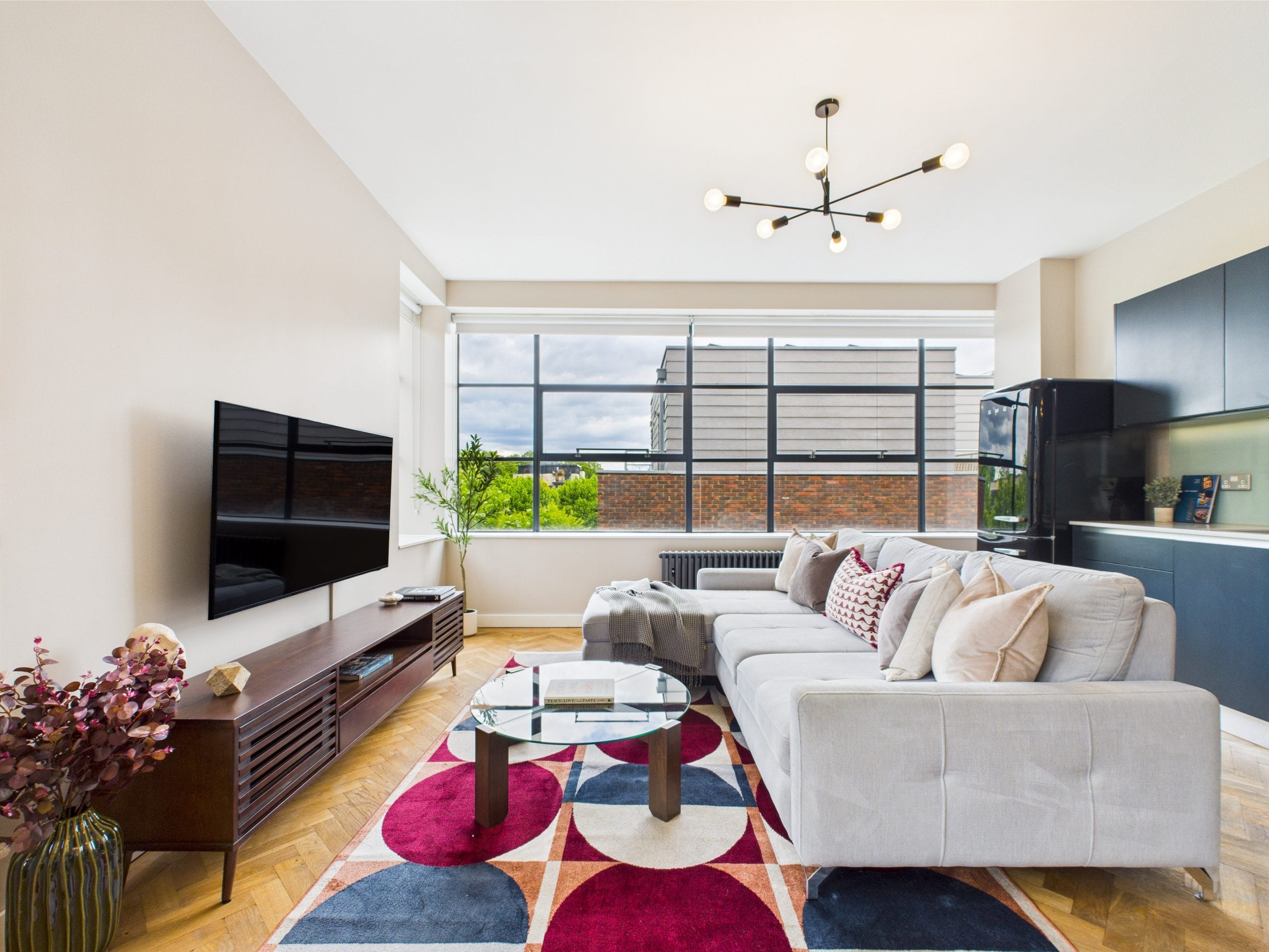 This apartment is based on the 4th floor of a residential/office building near Old Street, a prime London location. Occupying the corner of the building and covered in large windows on the exterior walls fills the space with natural light and offers views across to the City.