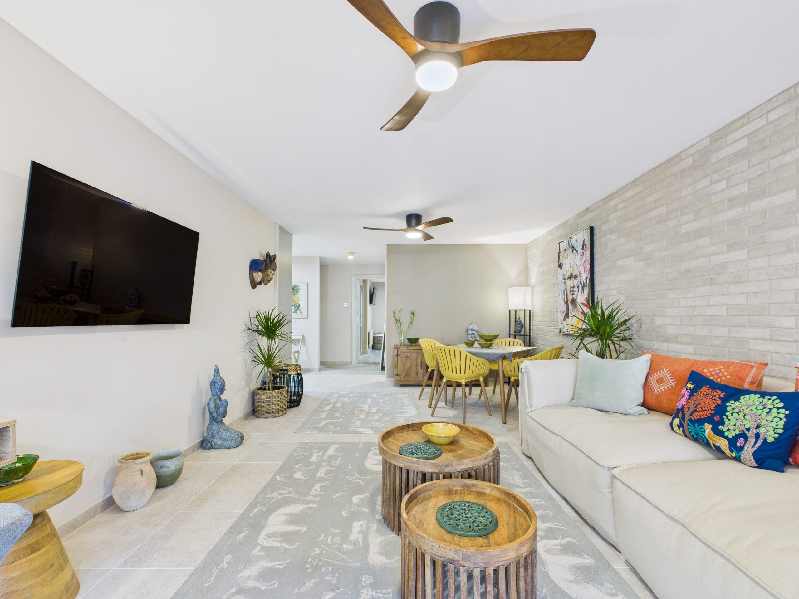 Located on the first floor of a residential building, the apartment spans over 72 square metres, feeling both snug and spacious, with its living, dining and kitchen area benefiting from an open-plan layout, creating a welcoming atmosphere. The kitchen is small but mighty, fully-fitted with all the appliances you'll need to create a home away from home, with the separate dining area nearby to host your guests. There is also balcony space; perfect for those morning coffees or taking in the city sounds.
