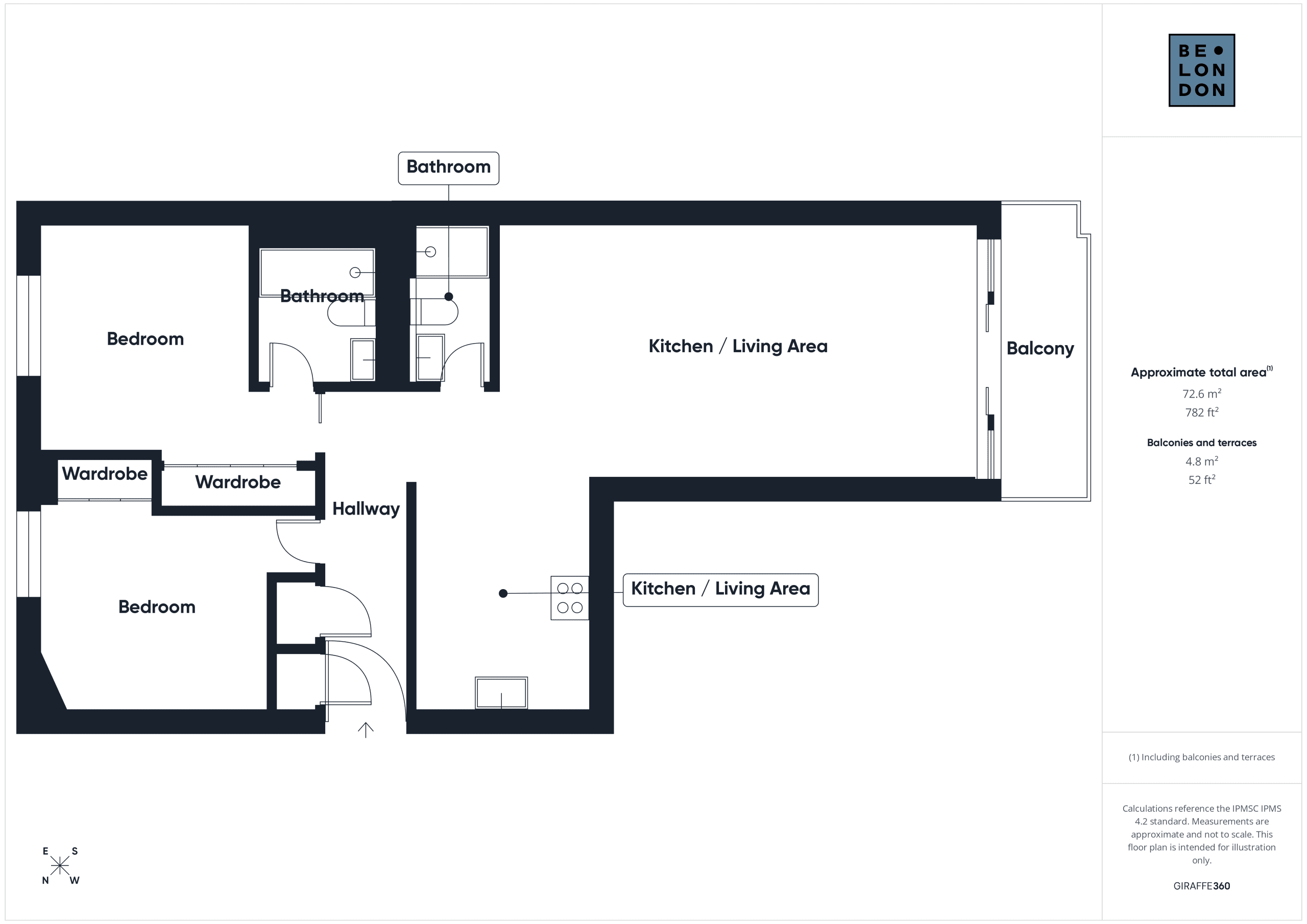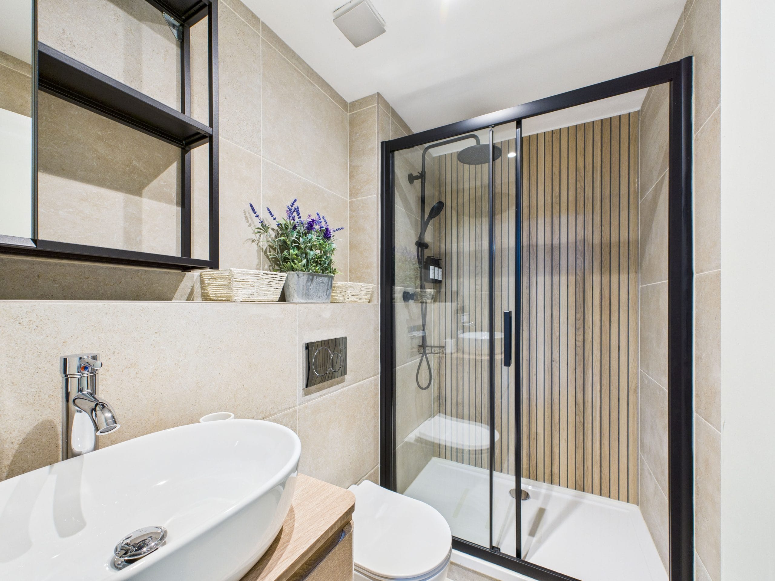 The two bedrooms both feature king-size beds and full-sized wardrobes, making space and storage a non-issue, whilst the primary bedroom benefits from an en-suite with walk-in shower. The main bathroom is also finished to a high standard, with another walk-in shower.